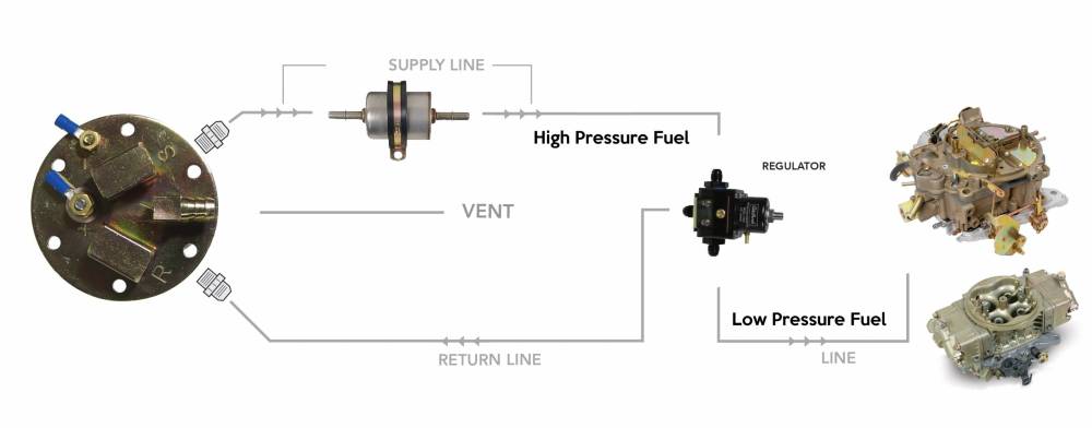 Now you can upgrade your tank to an EFI Ready tank and in-tank pump for use with an EFI system. This kit comes with everything you need to get rid of your mechanical or inline pump. In Tank pumps are much quieter than in tank pumps and have a longer lifespan in most cases. Not only can you get the benefits of a high pressure in tank pump but you can make the switch to EFI easily if you decide to in the future.